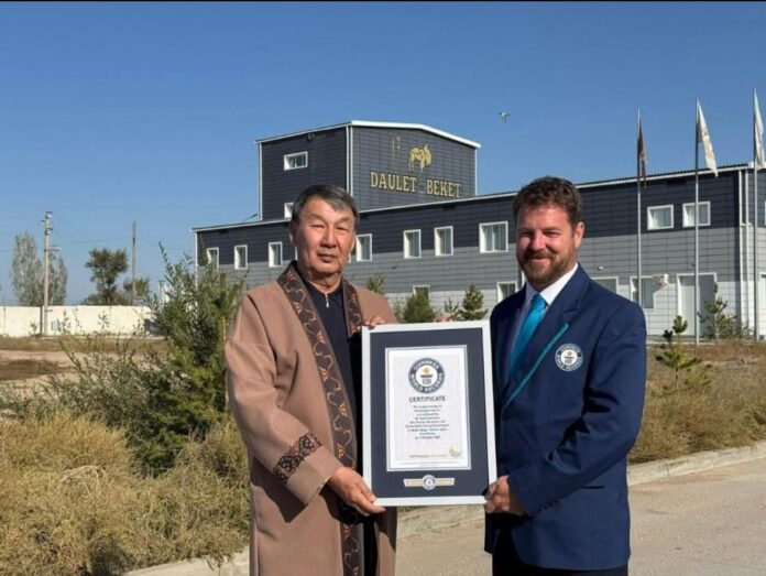 Сертификат о мировом достижении вручил представитель Книги рекордов Гиннесса Ричард-Уильям Стэннинг, отметив уникальность казахстанского рекорда:
