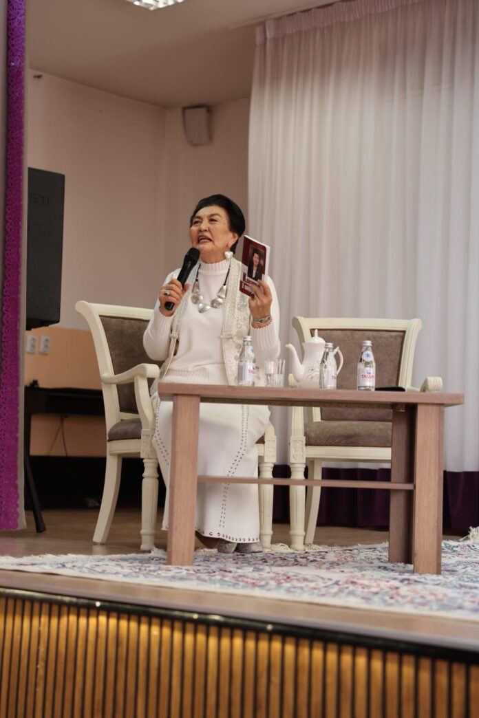 Сондай-ақ «2020–2024 жж. дерек бойынша Қазақстан, өкінішке қарай, әлем елдері ішінде ажырасу деңгейі бойынша екінші орында. Бұл – әрқайсымызға ой салатын ауыр шындық. Бүгінгі шараның тақырыбы «Ата-ана баланың айнасы» деп жақсы қойылған. Дәл қазір осы балалар үлгі етіп қарайтын айна, ата-аналарымыз ажырасып, айналар шытынап жатыр. Мұндай жағдайда балаларымыз кімді үлгі тұтады, қайдан тәрбие алады? Мемлекет шағын отбасылардан тұрады. Осы мәселені алдын алу бойынша кішкене болсын пайдам тисін деген мақсатта “Отбасы берекесі” атты кітабым шықты. 52 жыл отбасылық өмірімде әйел, келін, ене, әже ретінде түйгенім аз емес. Сол ойларымды кітапқа жинақтадым» дей келіп, әр шаңырақтың егесі ер адамдарға, ұйытқысы болар әйел адамдарға ой салар пікірлерімен бөлісті.