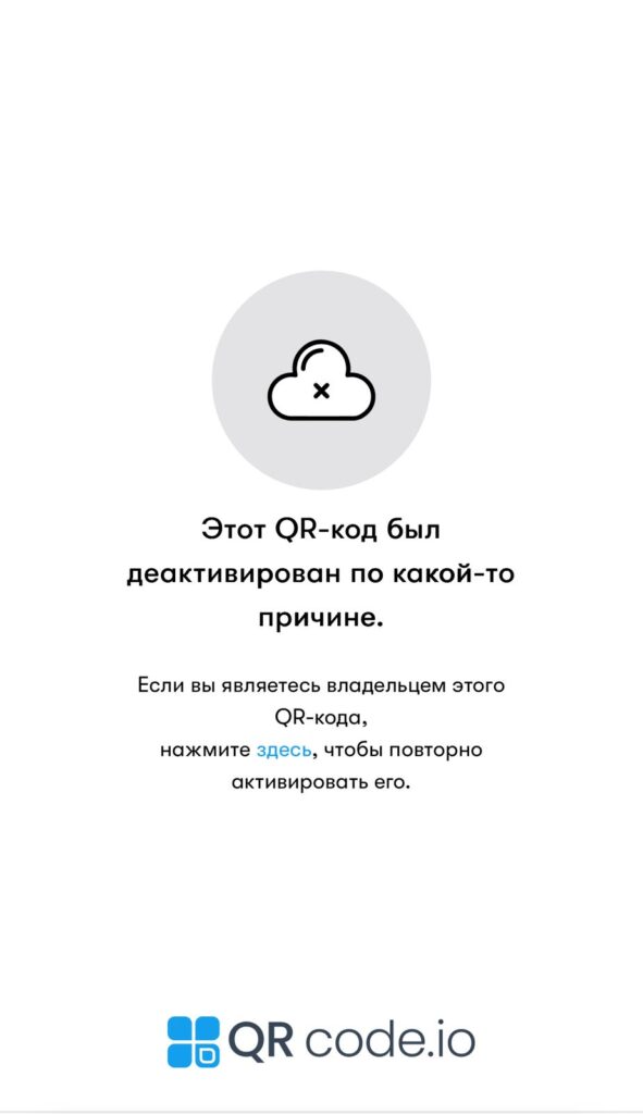 Попытка воспользоваться указанным QR-кодом показала, что он неактивен: при сканировании система сообщает о его деактивации и невозможности перейти по ссылке.