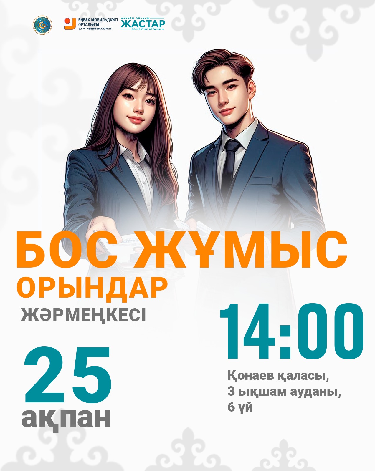 25 ақпан күні 💼 «Бос жұмыс орындары жәрмеңкесі» өтеді. Шаран Алматы облыстық жастар ресурстық орталығы мен Алматы облысы еңбек мобильдігі орталығы ұйымдастырып отыр. 🤗
