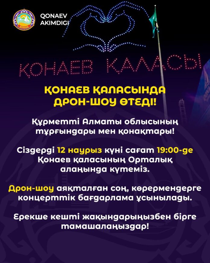 Сіздерді 12 наурыз күні сағат 19:00-де Қонаев қаласының Орталық алаңында күтеміз.