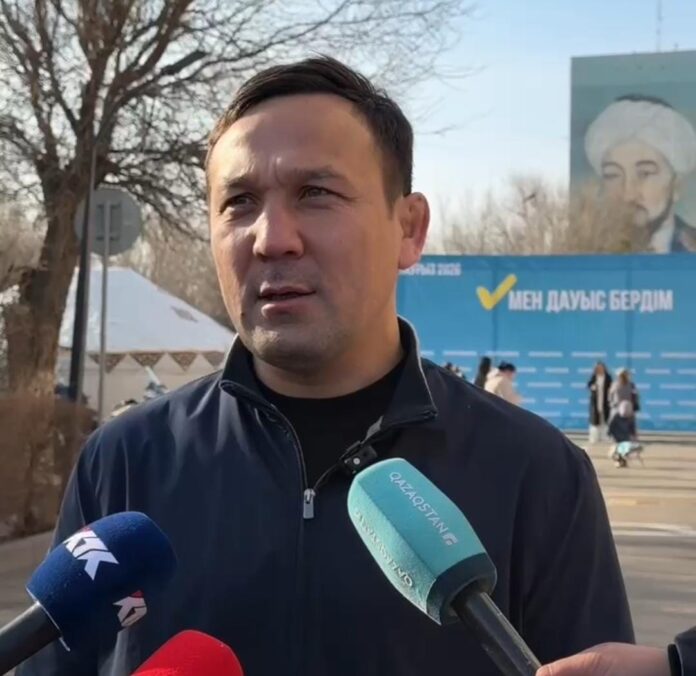 В городе Конаев в республиканском референдуме принял участие известный спортсмен, бронзовый призёр Олимпийских игр 2012 года в Лондоне Акжурек Танатаров.