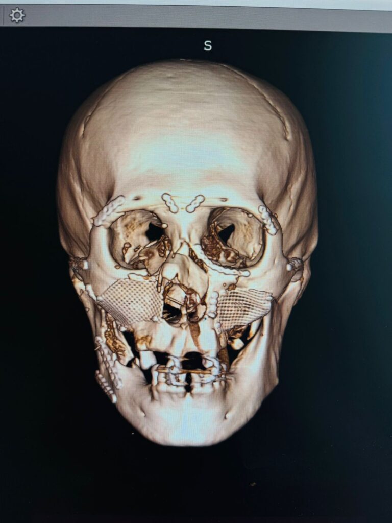 Нәтижесінде дәрігерлер бет қаңқасының тұтастығын қалпына келтіріп, науқастың өмірлік маңызды қызметтерін сақтап қалды және әрі қарай кешенді оңалтуға жағдай жасады.