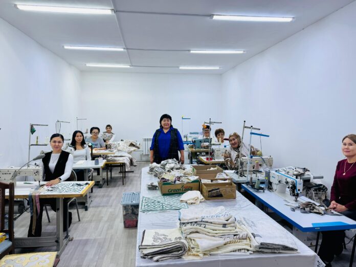 Қазір цехта 10 шақты адам тұрақты жұмыс істейді. Сонымен қатар көпбалалы аналар үшін икемді жұмыс кестесін ұйымдастырдық – кешкі уақытта келіп жұмыс істей алады немесе үйде отырып тігеді.
